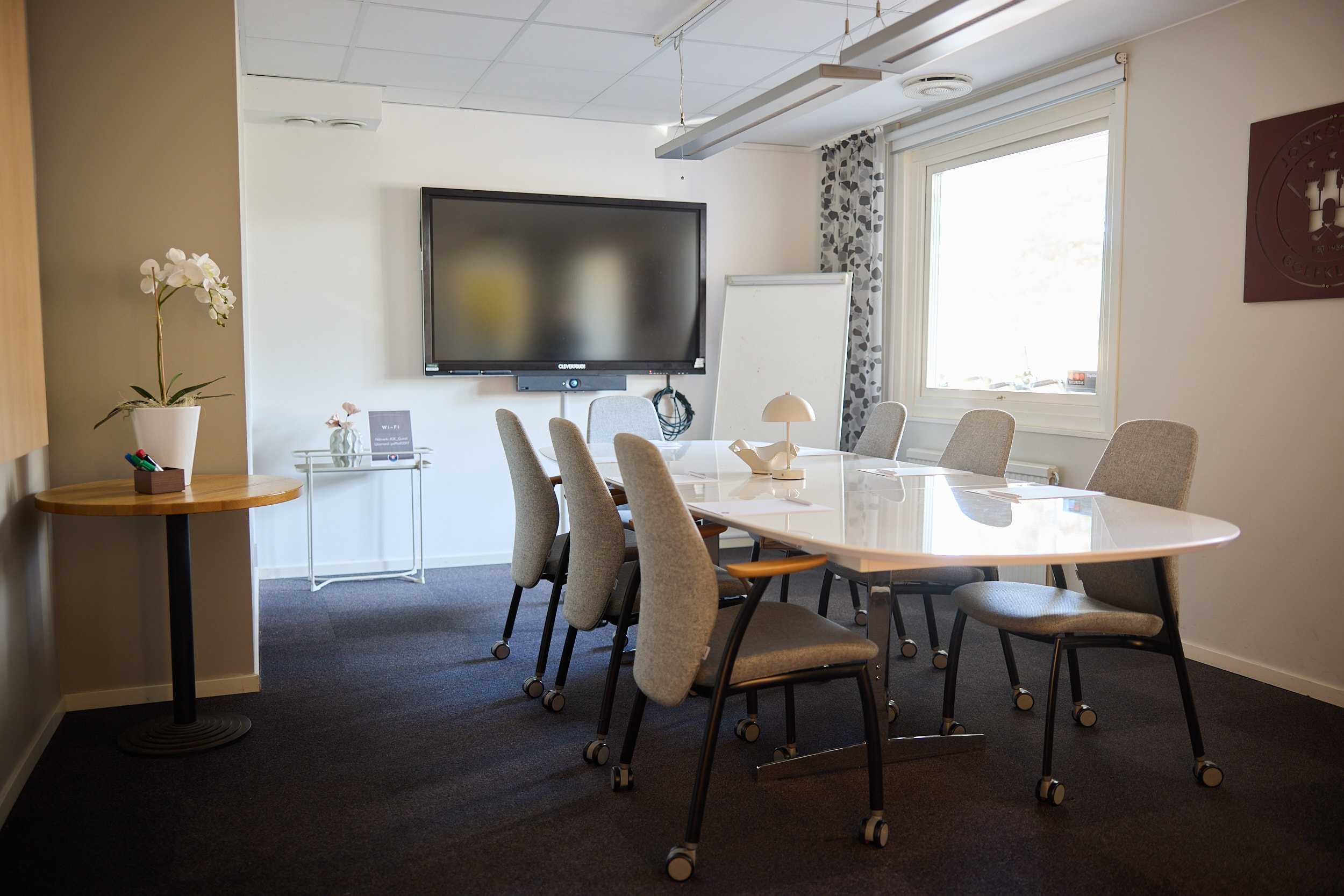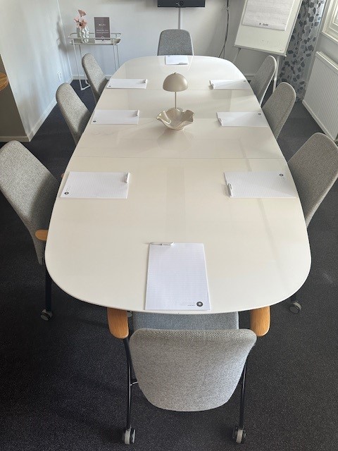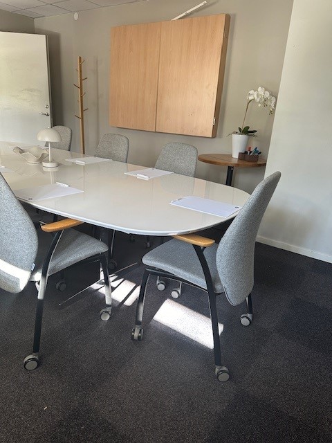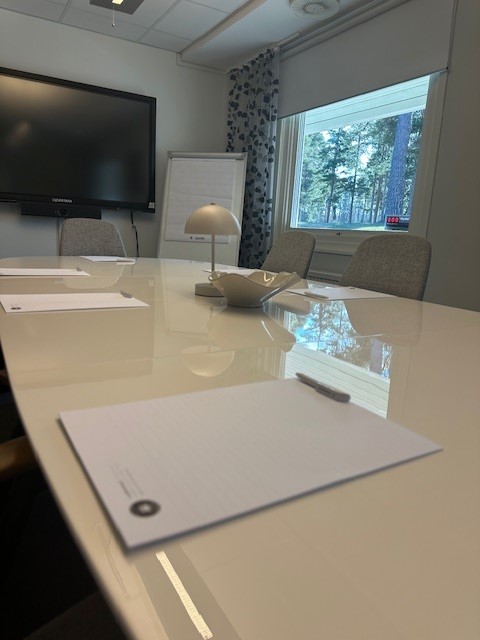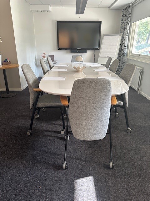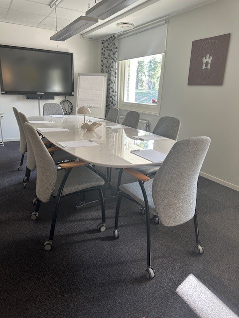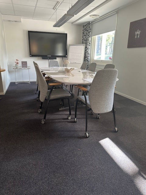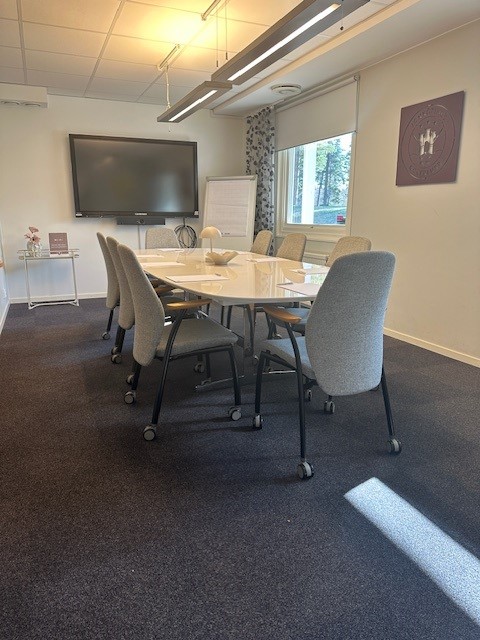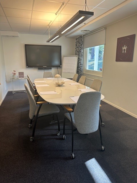 Konferensrummet har plats för upp till 12 personer och är utrustat med trådlöst internet, smartTV för presentationer och videomöten, samt anteckningsblock och pennor.