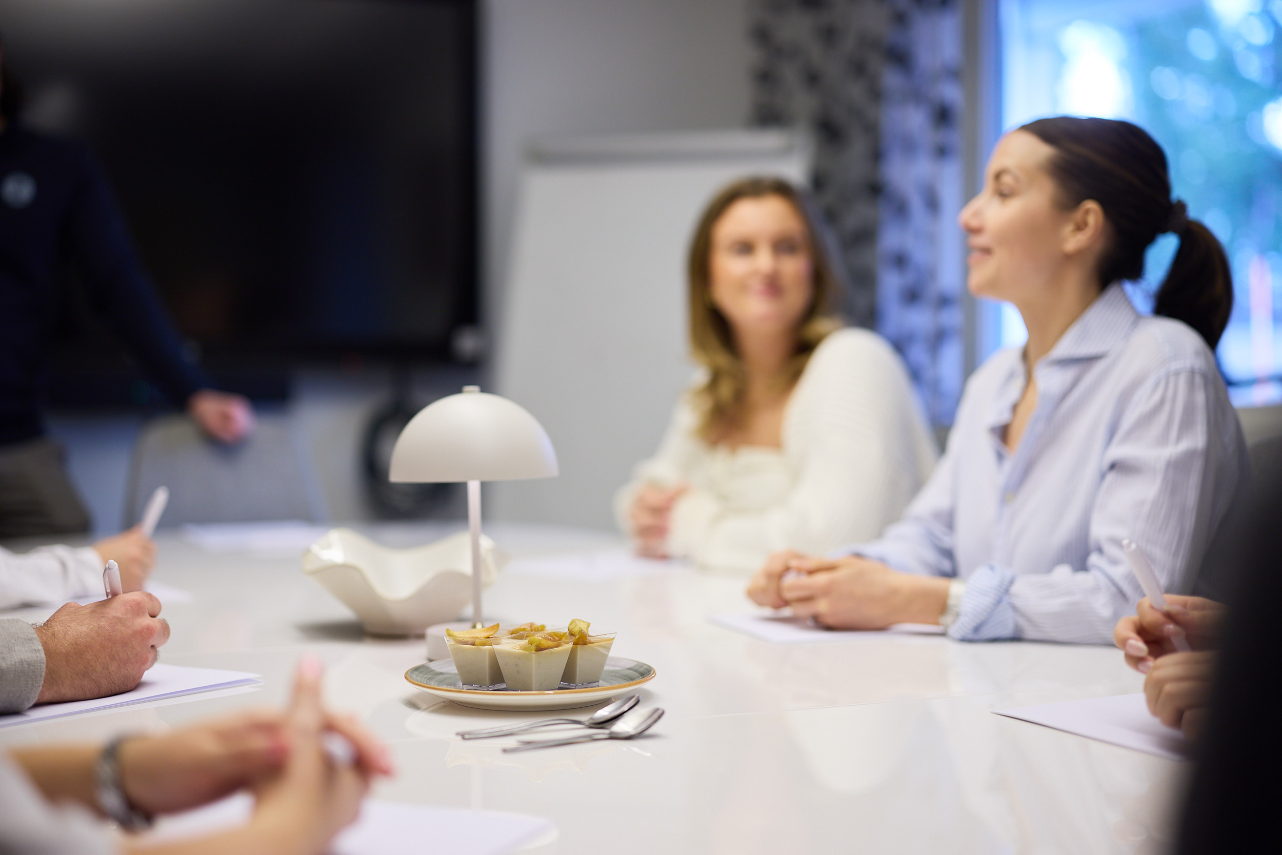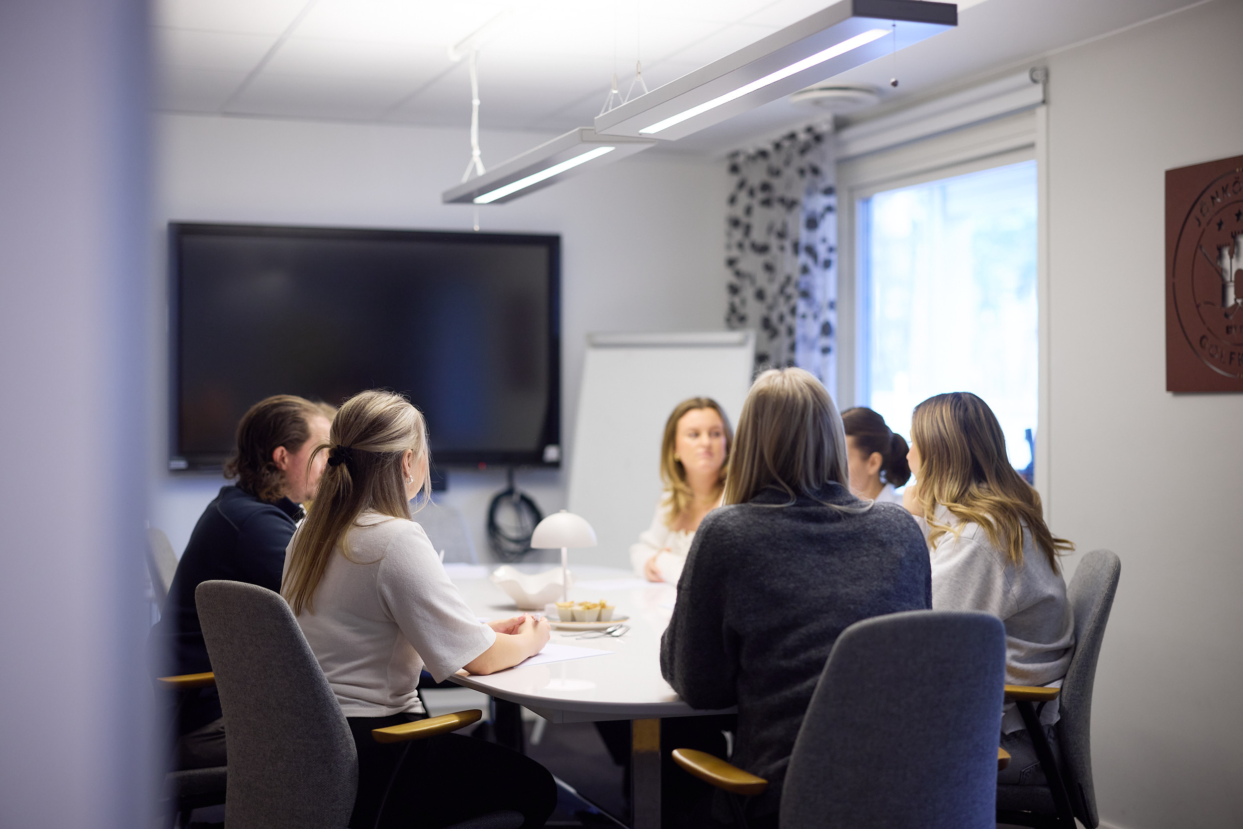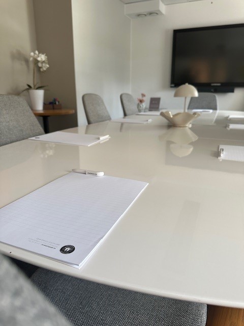 Konferensrummet har plats för upp till 12 personer och är utrustat med trådlöst internet, smartTV för presentationer och videomöten, samt anteckningsblock och pennor.