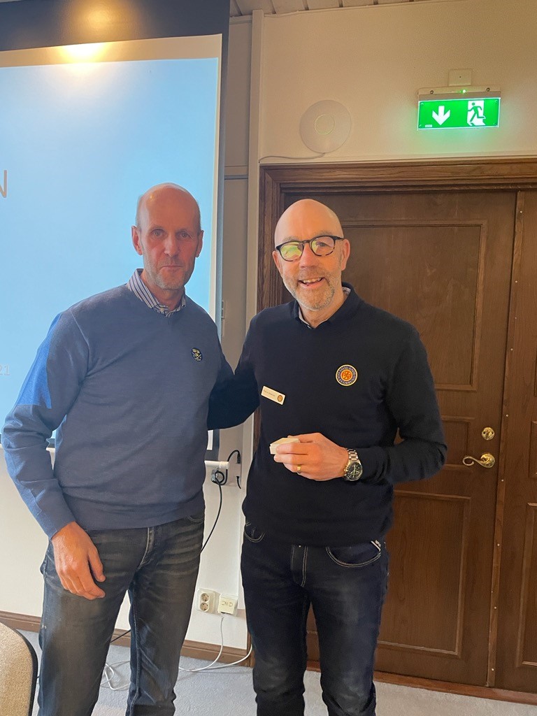 Förbundschef Gunnar Håkansson (till vänster) delade ut märket.